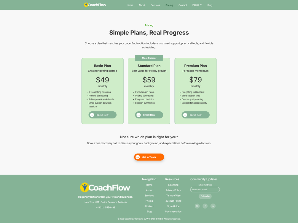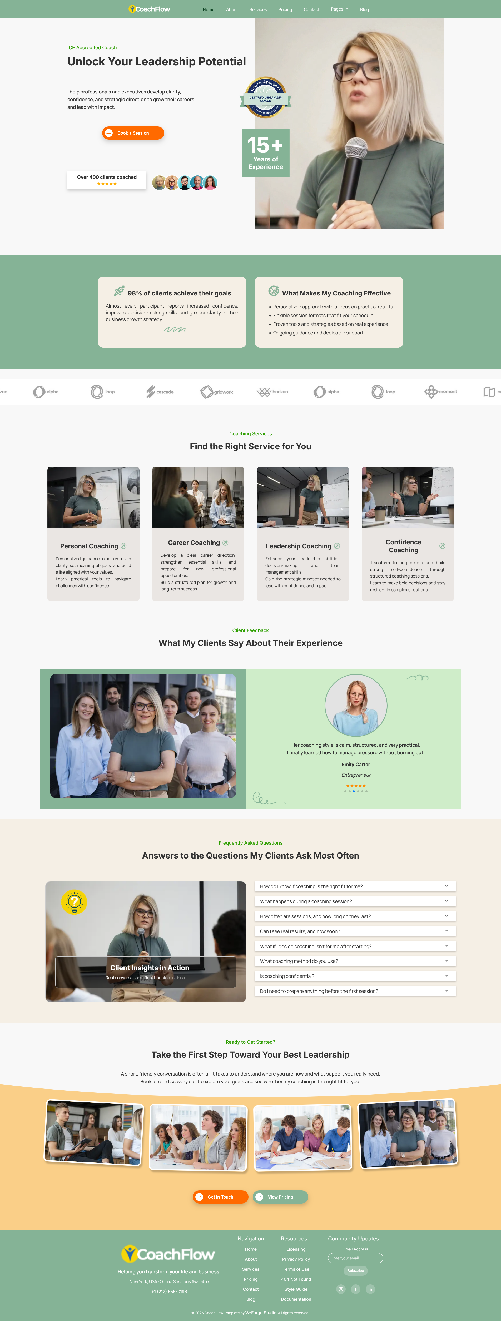 This coaching website template includes 22 carefully designed HTML pages covering all core sections needed for a professional coaching website.